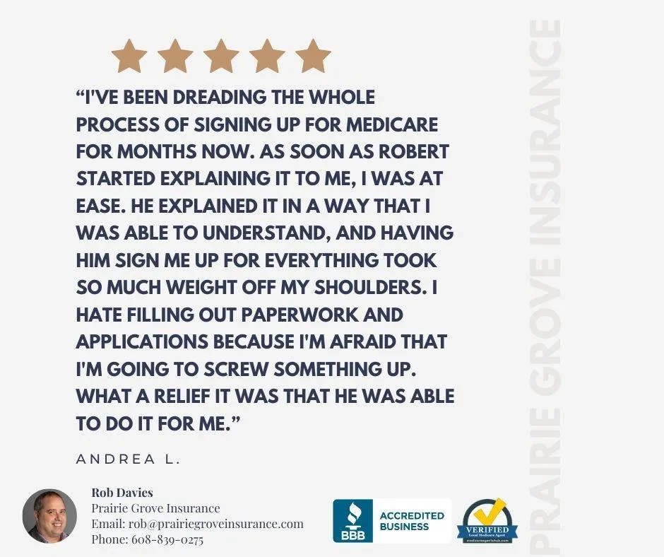 Rob the founder of Prairie Grove Insurance has been teaching Medicare 101 over a decade. Rob takes an individual approach to teaching Medicare and believes everyone should understand how Medicare works. Each year, Rob helps thousands of Medicare recipients make the right choice for their individual needs.
